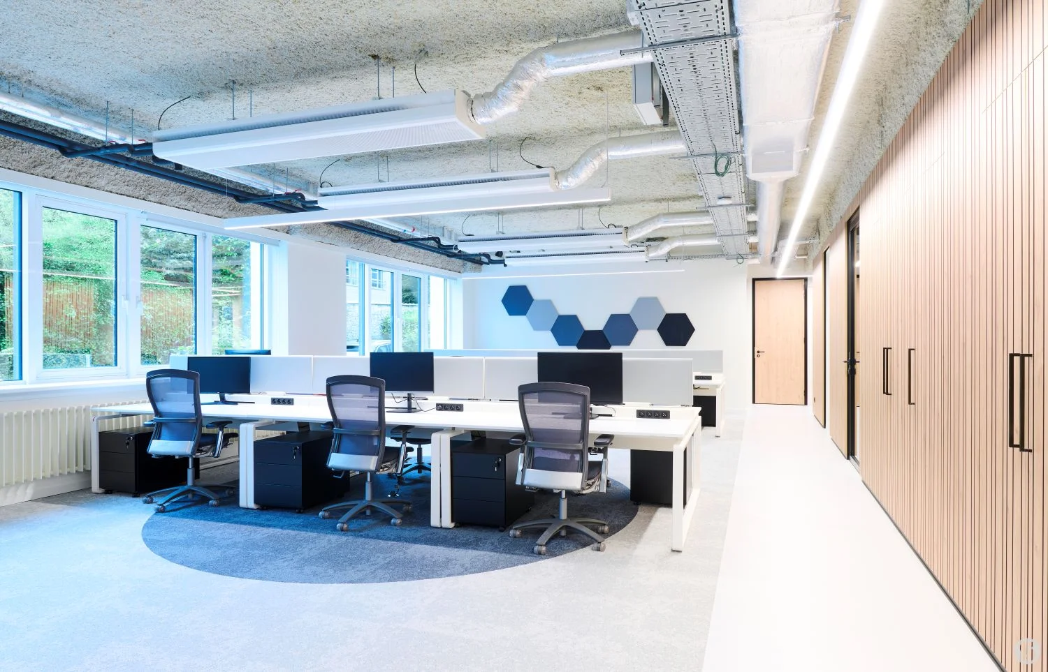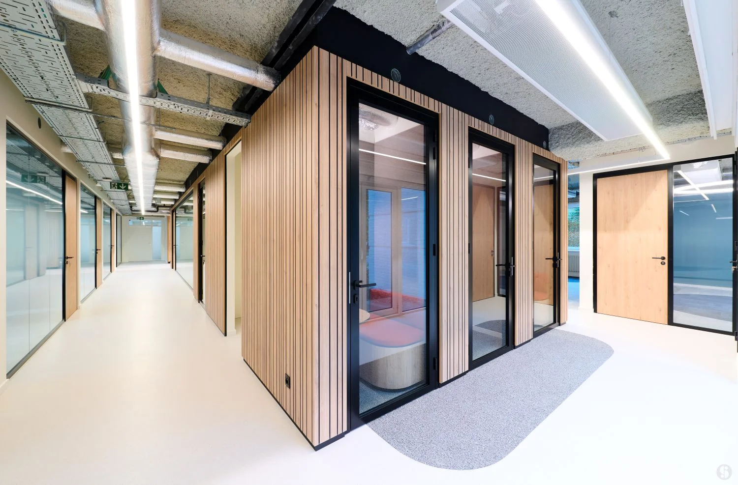 The result: a sophisticated multi-tenant floor, combining technical excellence, acoustic comfort and timeless aesthetics where technology, finance and media professionals thrive side by side.