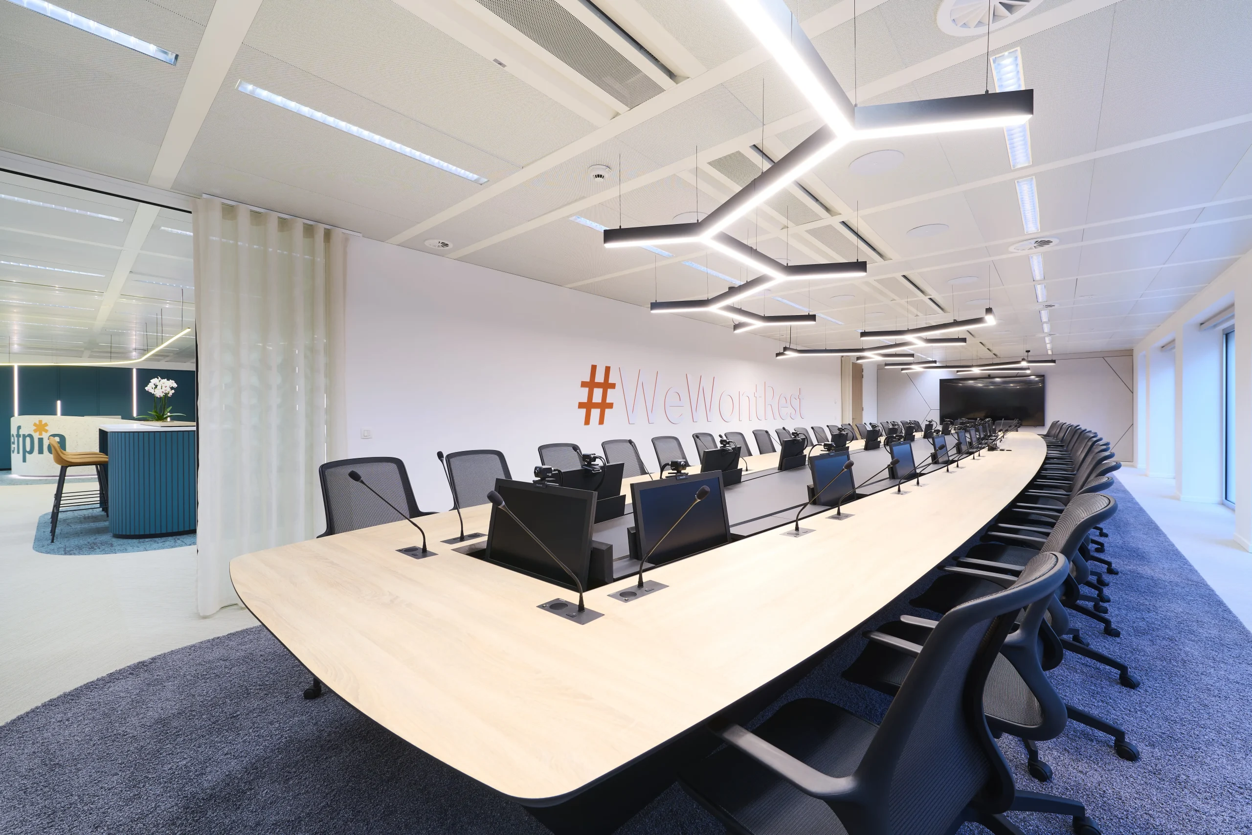 • Une table de conseil sur mesure pour 40 personnes, pensée pour le confort et la concentration ;