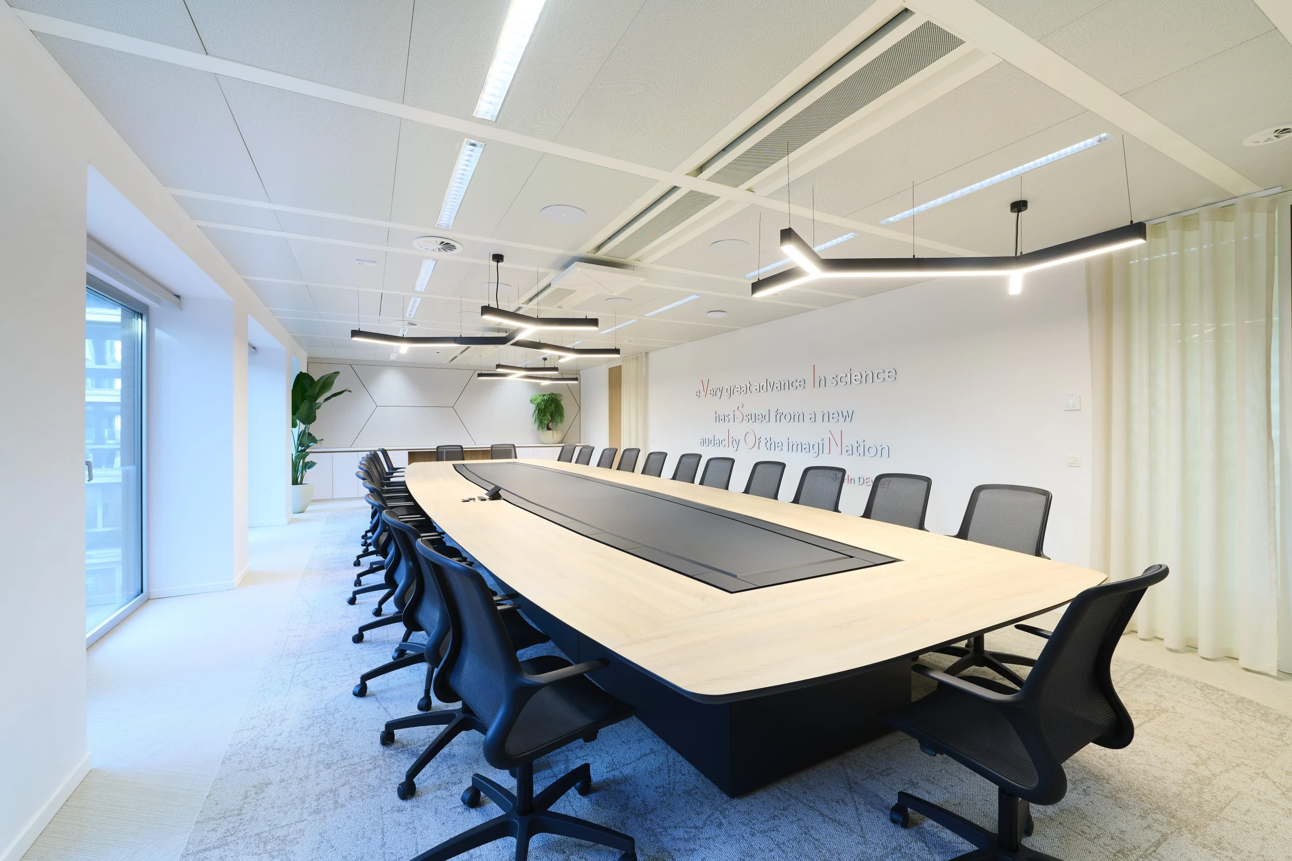 De la table de conseil sur mesure pour 40 personnes aux systèmes audiovisuels discrets, rien n’a été laissé au hasard pour favoriser un dialogue de haut niveau. L’agencement général du site conjugue fonctionnalité et confort pour refléter le rôle de l’EFPIA comme partenaire de confiance pour la santé en Europe.