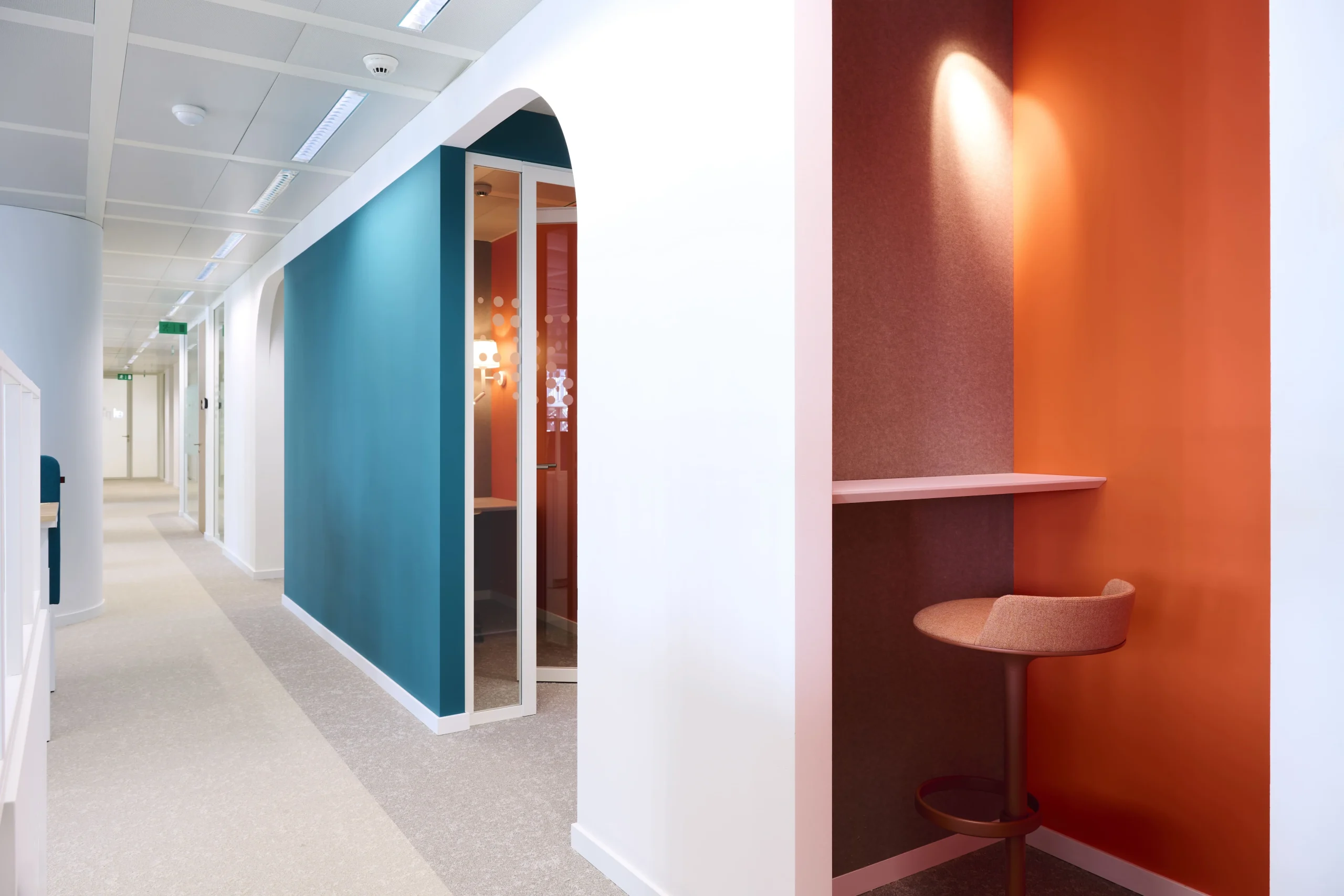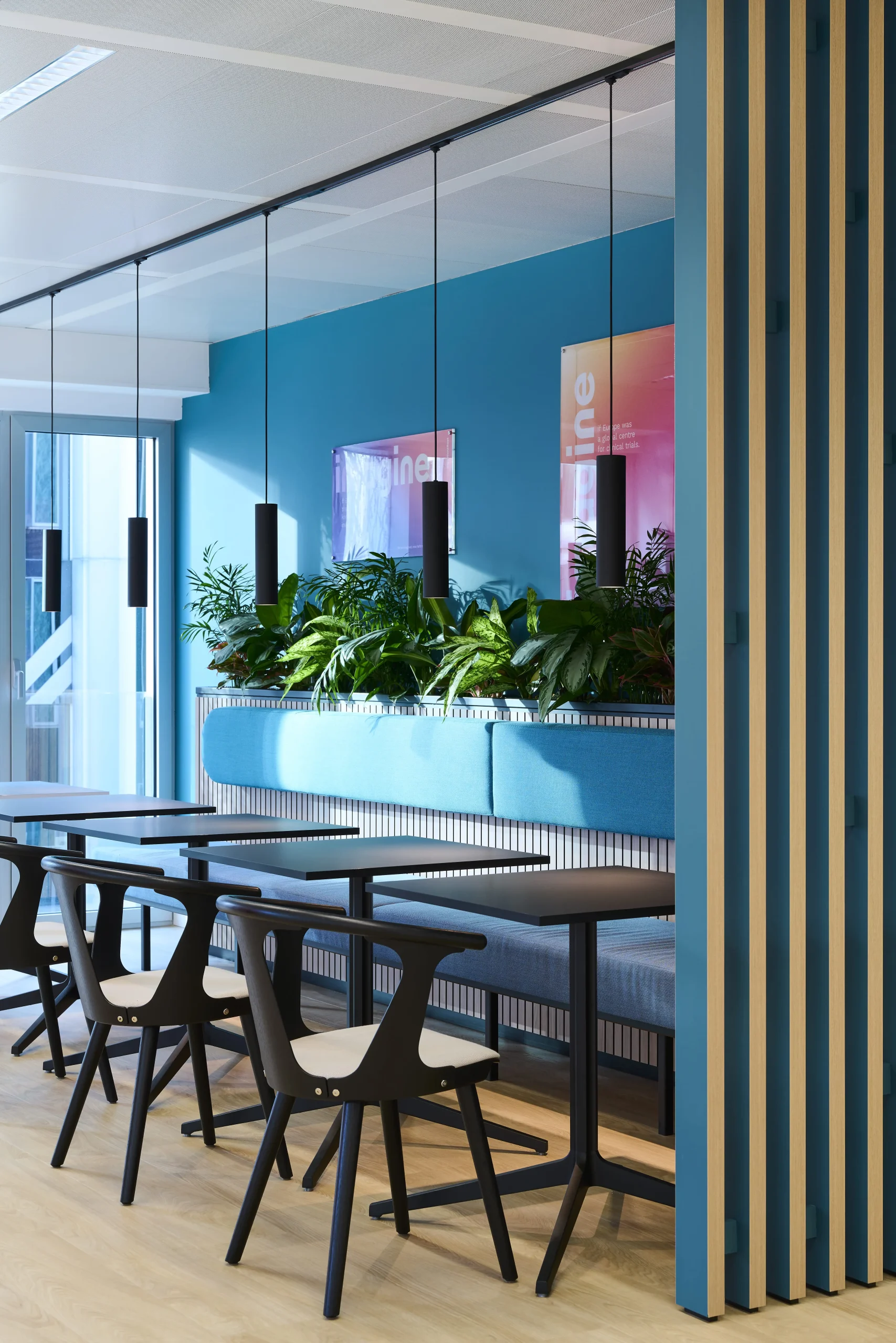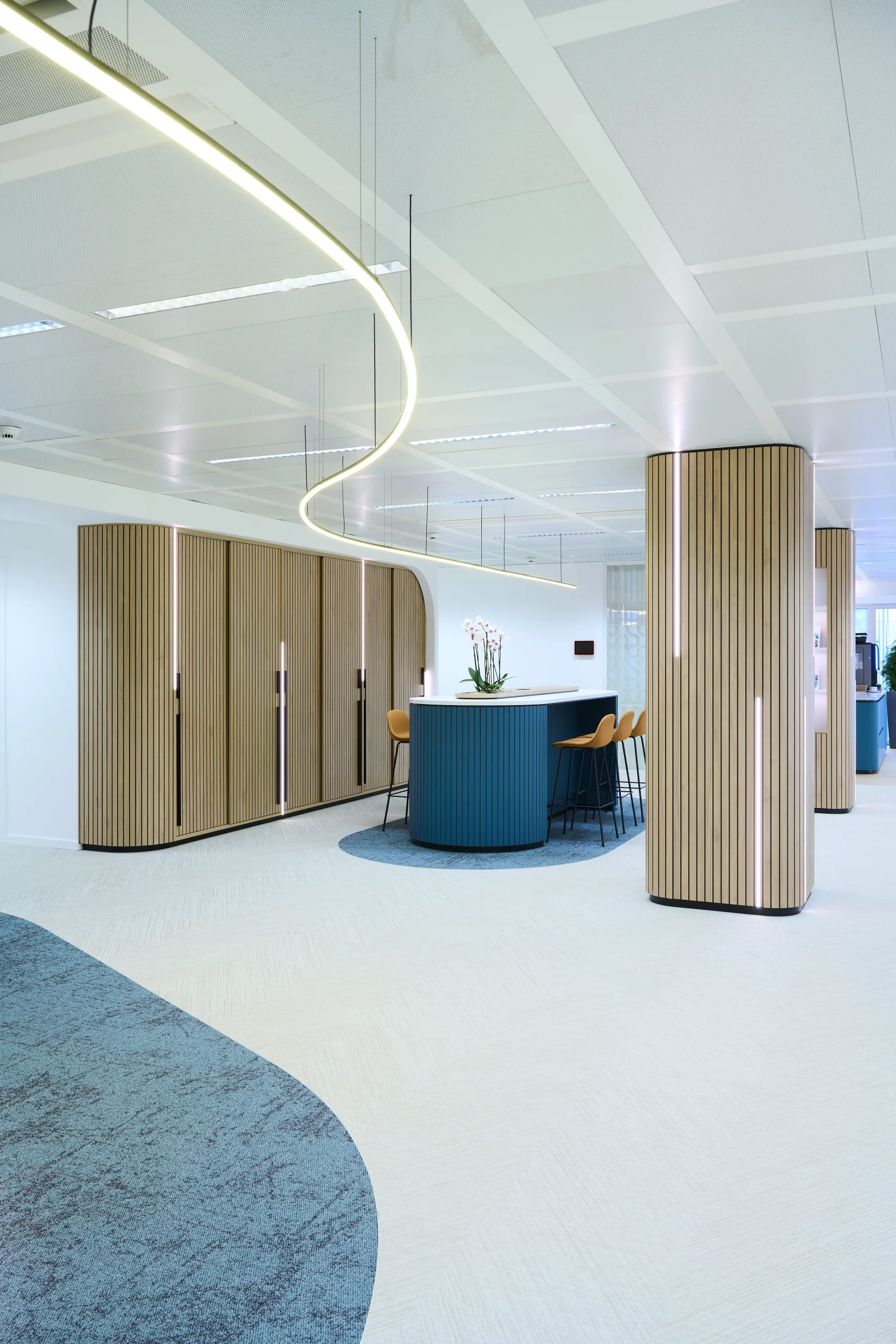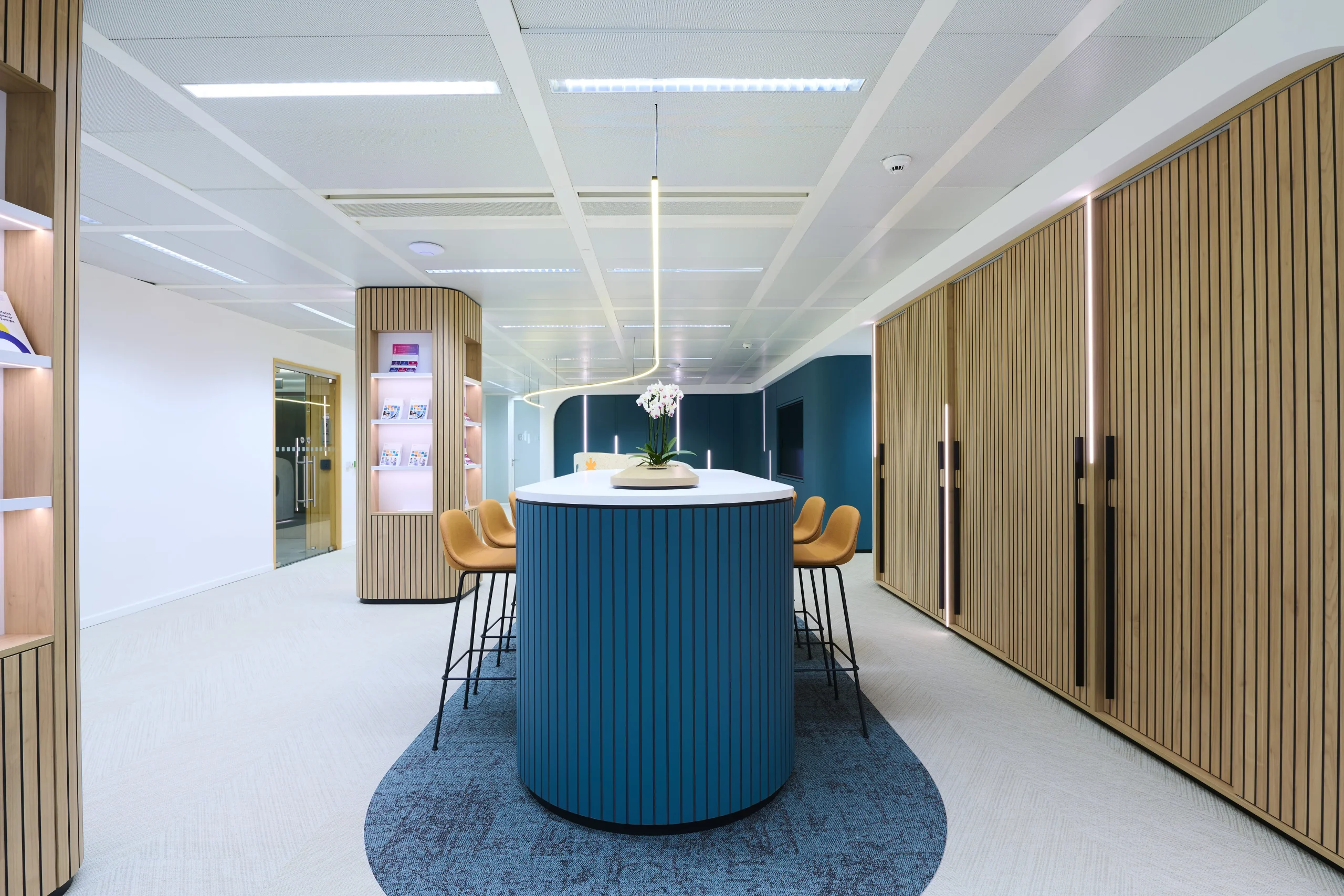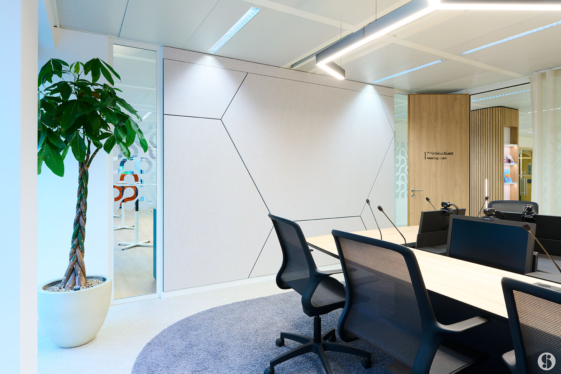 Le projet comprend des salles de réunion, une technologie parfaitement intégrée et des espaces de détente dédiés. Un design ergonomique et des matériaux soigneusement sélectionnés garantissent confort et performance. Résultat : un environnement dynamique, tourné vers l’avenir, qui stimule l’innovation, la collaboration et le bien-être.