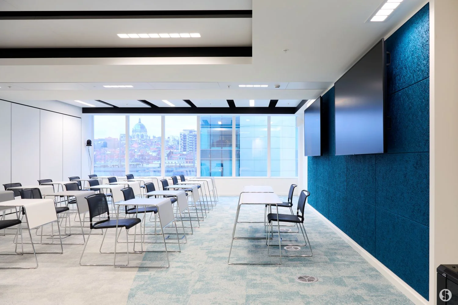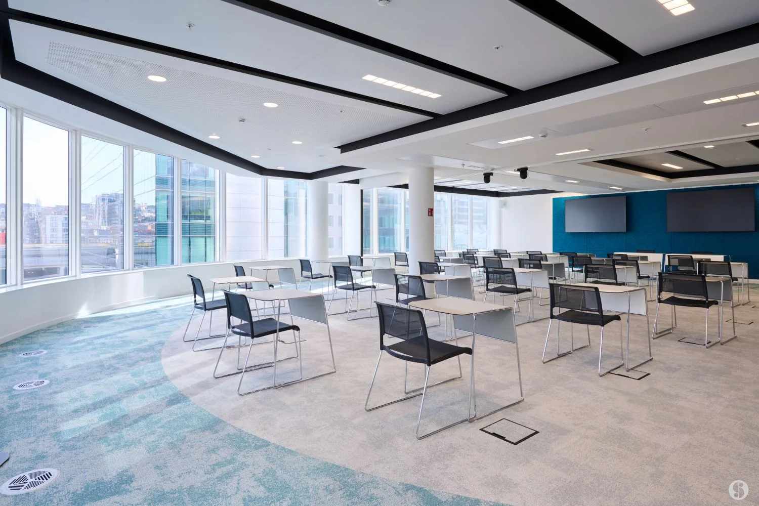 L’élégant hall d’accueil, doté de courbes douces et d’accents boisés, incarne cette approche centrée sur l’humain : un espace à la fois serein et inspirant. L’idéal pour les formations et les examens.