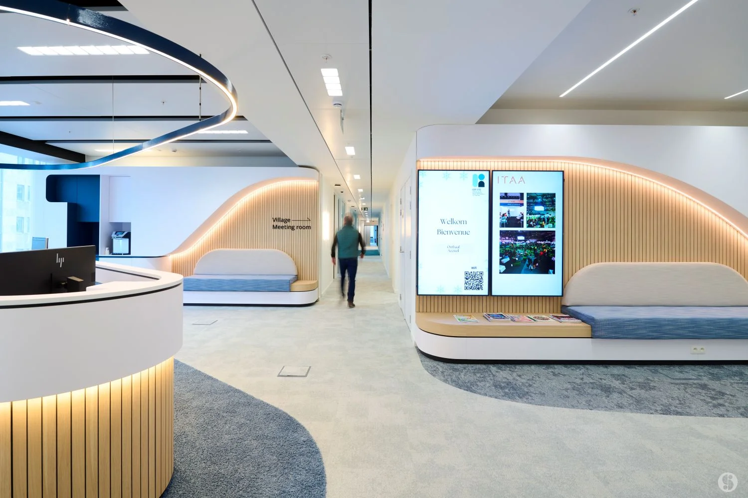 Notre concept pour l’ITAA et l’IBR a donné naissance à un véritable « meeting center », où l’on peut organiser des examens, et à un « village » : des espaces vibrants où travail et convivialité se rencontrent. Les lignes courbes, la palette de couleurs inspirée de la nature et le mobilier flexible créent un climat accueillant qui invite à la collaboration et l’interaction.