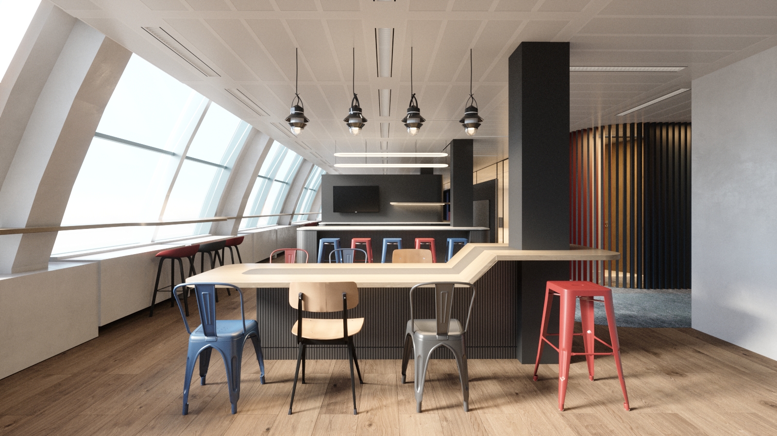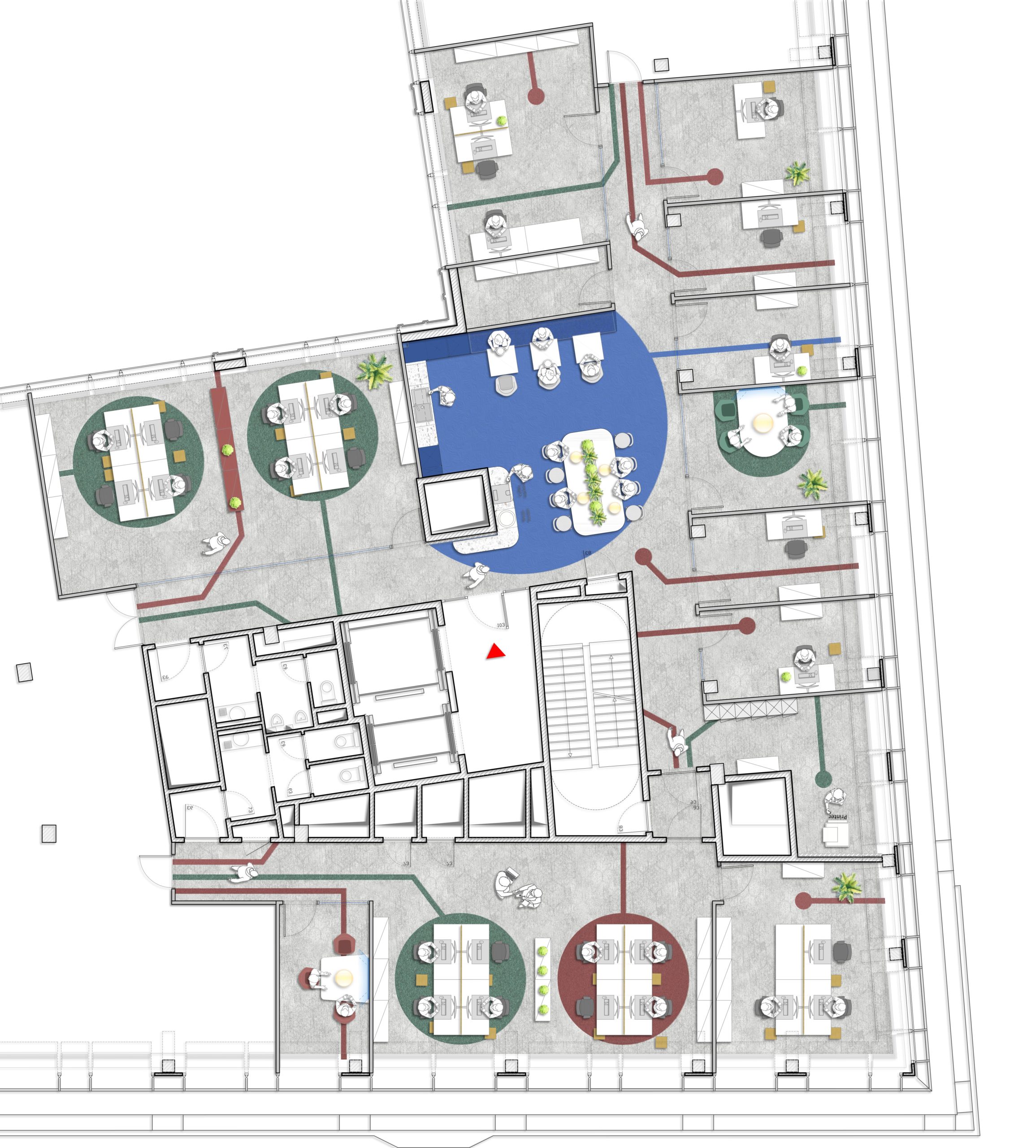 Le projet conjugue unité et diversité : des espaces partagés encouragent la collaboration interorganisationnelle, tandis que des zones dédiées traduisent la culture de chaque entité.