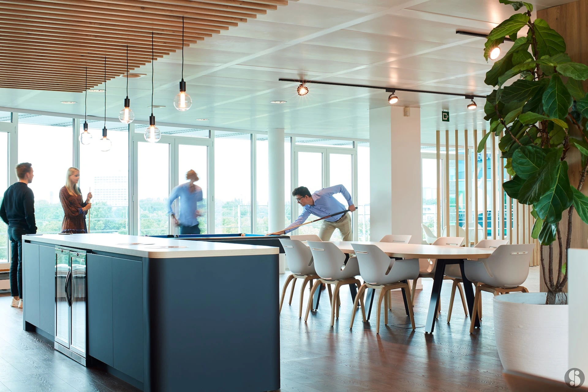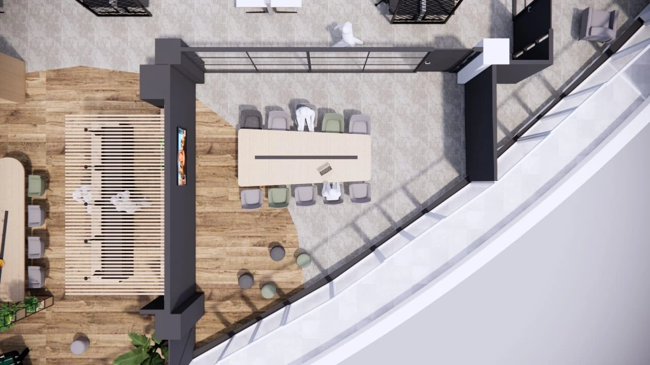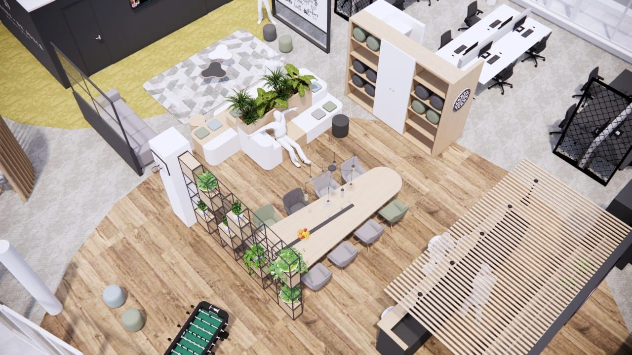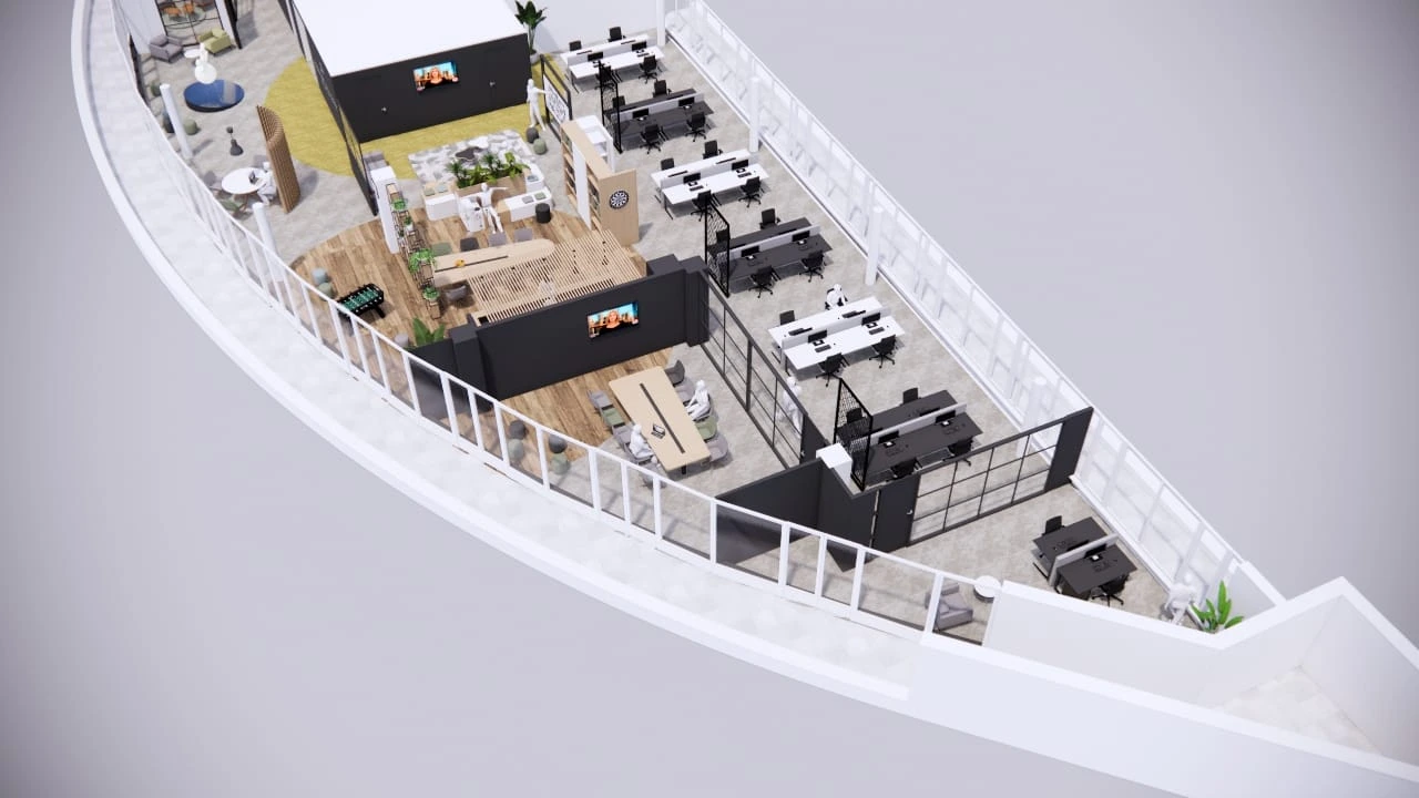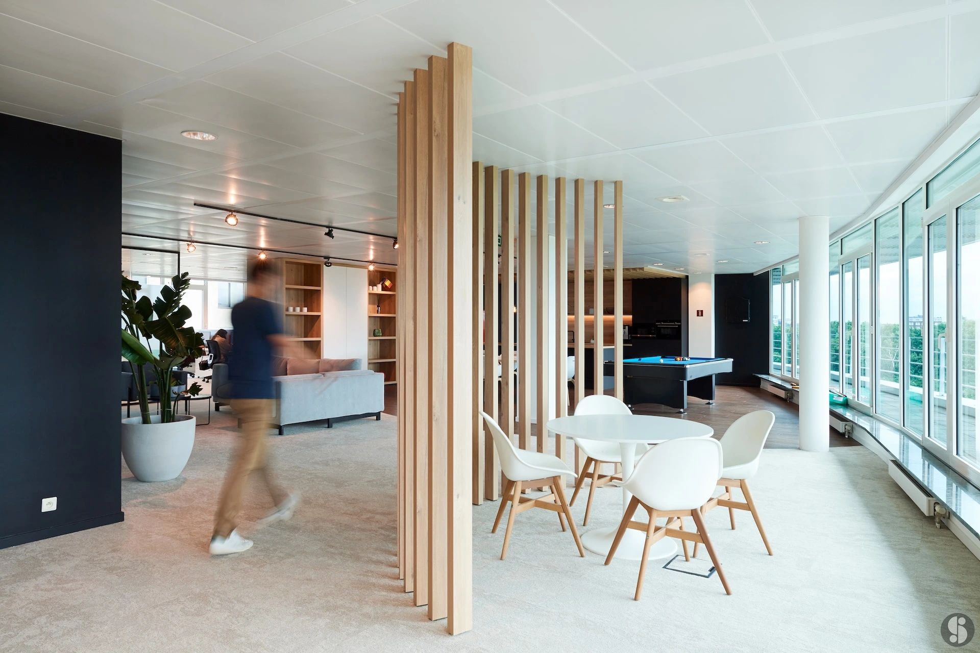 Le bureau s’articule autour d’un cœur vibrant : un espace central et ouvert pour se rassembler, échanger et célébrer. De ce noyau rayonnent des zones plus sereines : bureaux, salles de réunion et espaces de consultation assurent l’équilibre entre lien social et concentration. Ce tempo nourrit l’énergie d’équipe tout en préservant la concentration de chacun.